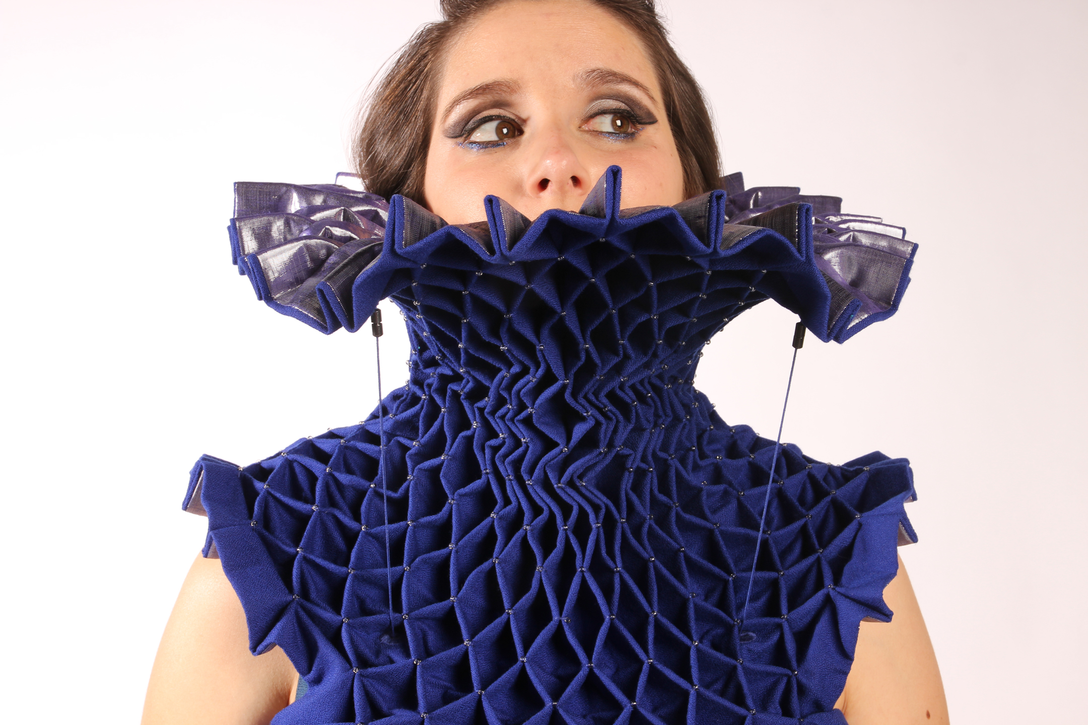 Clothing for Moderns is an investigation into the use of “soft” actuators in couture electromechanical clothing. Borrowing from established textile techniques, using materials that are native to wearables, and focusing on processes that can be done by hobbyists, the project explores a possible vocabulary for wearables beyond surface ornamentation and rigid structures. Clothing for Moderns was produced during a residency at the Frank-Ratchye STUDIO for Creative Inquiry and funded by the National Endowment for the Arts, Pennsylvania Council on the Arts, and the Frank-Ratchye Fund for Arts at the Frontier. The project was discussed in the artist talk “Clothes That Move: Why and How?” in December 2014.